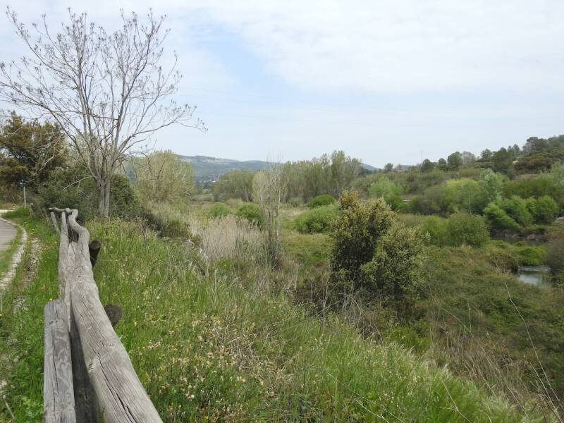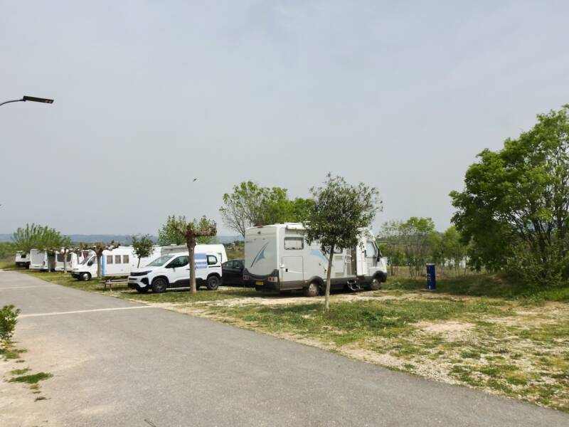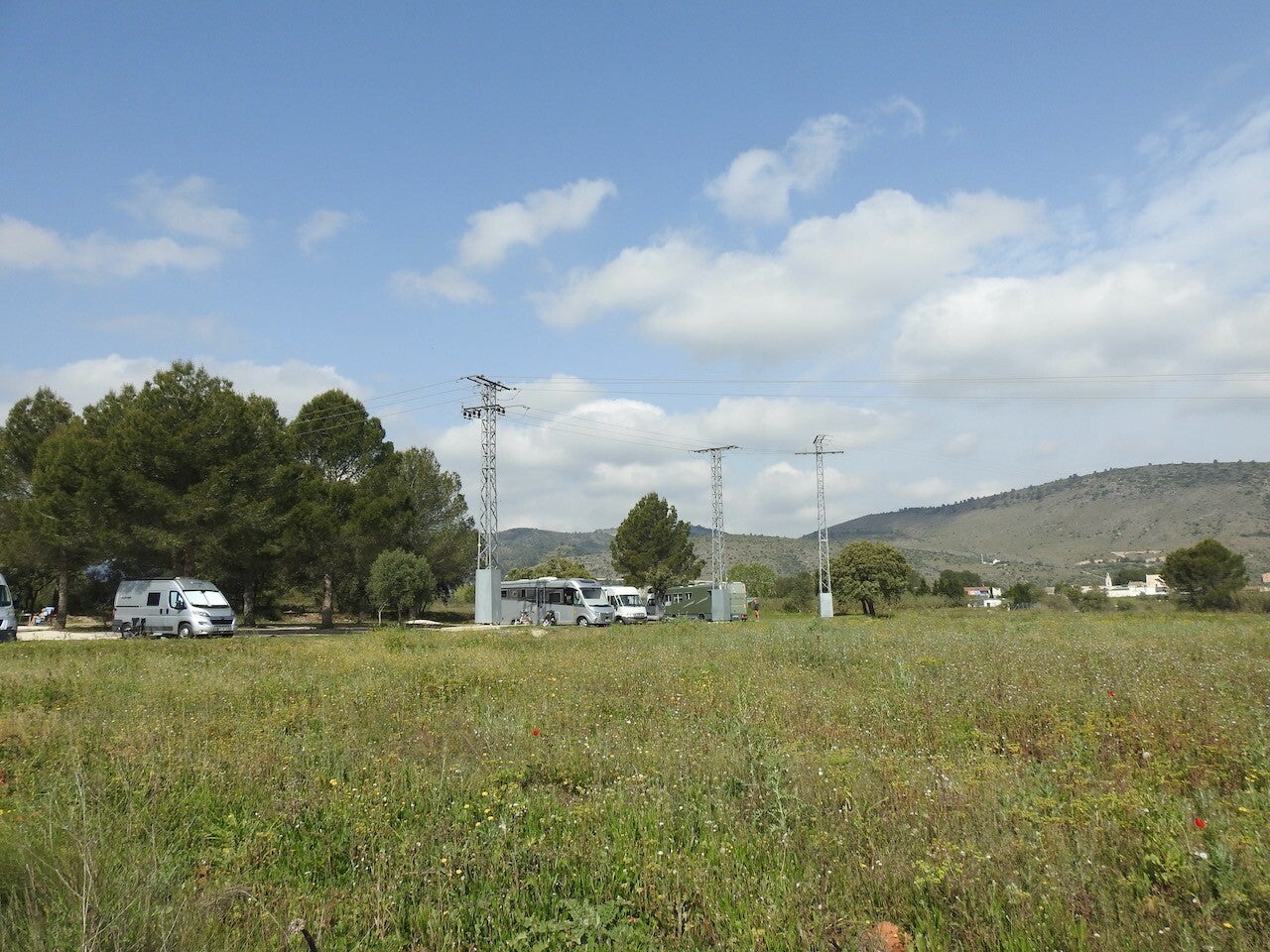 De diesel was vandaag weer 7 cent duurder dan gisteren. Nu tanken we pas over een paar dagen, we hebben diesel genoeg in de tank. De weg hierheen werd vrij druk met vrachtwagens naarmate we Valencia naderden en omdat we nu een kruissnelheid hebben van 90 k/h worden we wel eens door een vrachtwagen ingehaald. Toen we van de snelweg af waren was het landschap nog mooier, met vergezichten maar het was op dat moment nog erg heiig. Het laatste stukje door het dorp Bellus was eerst puzzelen om dat er een weg opgebroken was. Maar we wisten dat we bij het zwembad moesten zijn en er verschenen ook bordjes die ons de weg wezen naar de cp.