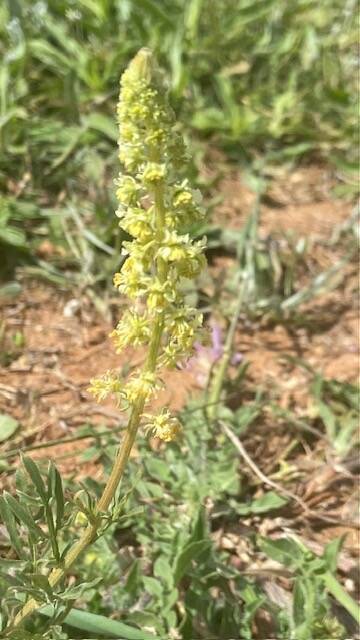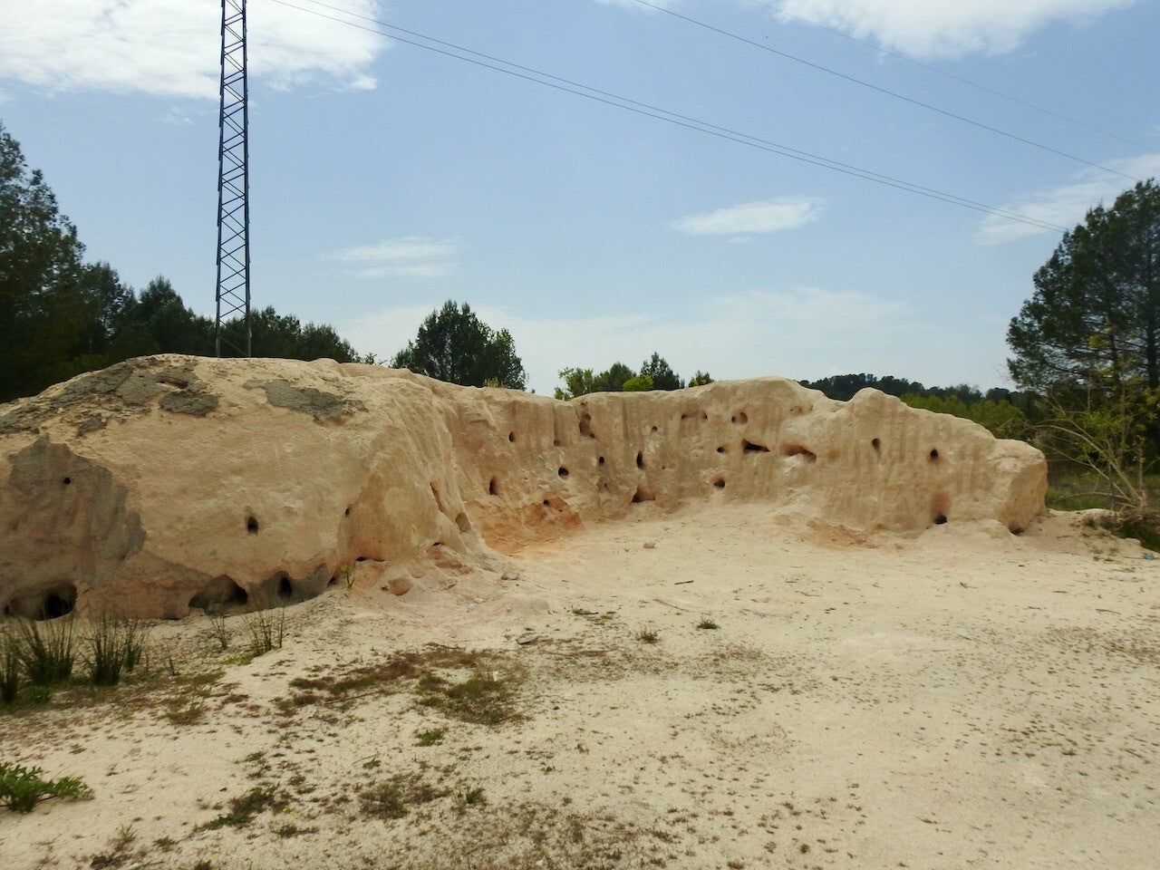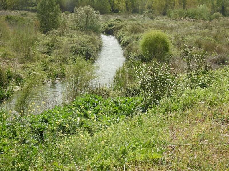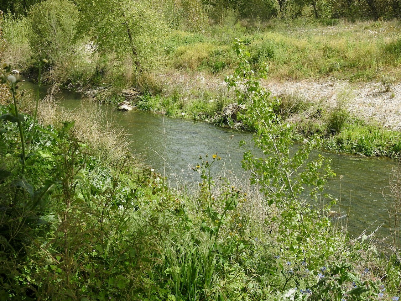 We zijn gewandeld naar het riviertje de Albaida die na het stuwmeer verder stroomt door een mooie kloof iets verderop gelegen, het gebied heet hier L’Estret de les Aigües ( Valenciaanse spelling). Er zijn bronnen in de kloof en tamelijk beroemde grotten. Zo is de Cova Negra is een zeer belangrijke archeologische vindplaats, het werd ooit bewoond door Neanderthalers. De archeologische vondsten gedaan in die grot, waaronder vuurstenen werktuigen en menselijke resten, bieden cruciale inzichten in de Moustérien-cultuur ( die van de Neanderthalers), waardoor het een belangrijke site is voor het begrijpen van het prehistorische leven in deze regio. De grot werd 130.000 jaar geleden al bewoond door Neanderthalers . Ze jaagden vanuit de grot en hebben er primitieve rotsschilderingen gemaakt. We zijn daar 9 jaar geleden naar toe gewandeld, de grot is afgesloten met een hekwerk van spijlen en het was toen te hoog en stijl voor ons om er bij te komen. Nu was het zelfs te ver om er heen te wandelen, ivm mijn hielspoor. Maar de wandeling langs het riviertje, die nu geslonken is tot een beekje , is mooi, er zijn ook daar veel bloemen. In totaal hebben we 4km gewandeld .