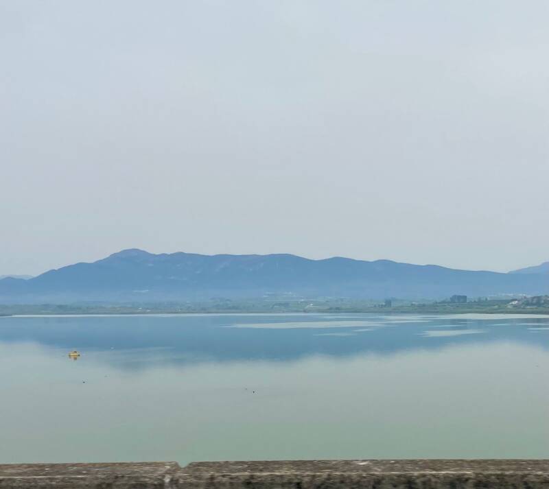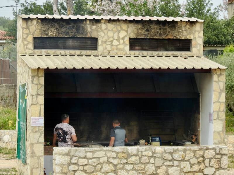 Wat de cp met stroom betreft, we zouden in Bellús op het lager gelegen veld kunnen gaan staan waar stroom is maar het is na 3 dagen daar staan ook wel leuk om even een ander behang te hebben, op 10 min. rijden van Bellús is een kleine cp met stroom . Daar zijn we eerst gaan kijken, omdat je een stukje over het meer kijkt zijn we daar gebleven en het hier ook een mooie omgeving is.. Om 14.00 uur dachten we te gaan lunchen in de enige bar in het gehucht Benisuera maar die bleek gesloten. Verder is er naast de cp een levendige picknickplek in een leuk parkje, met barbecueplekken. We werden door onze jonge buren al uitgenodigd om een pilsje mee te drinken in het park maar daar was het ons nog te vroeg voor.