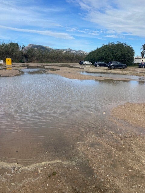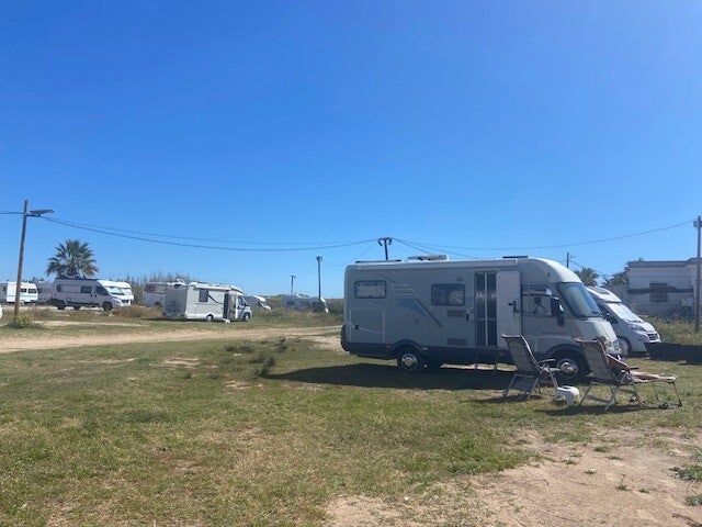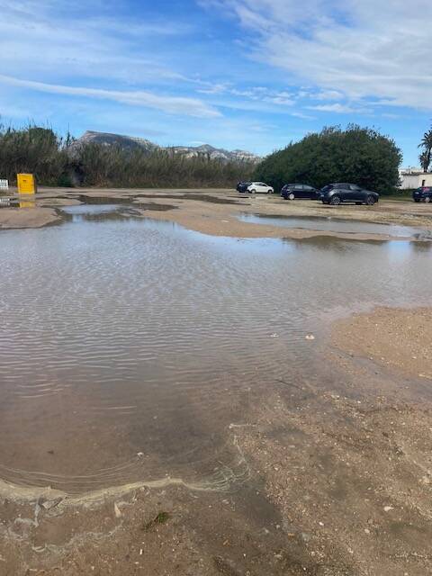 We hebben vannacht veel regen gehad, viel er gisteren overdag maar 3 mm , vanaf een uur of 1 is er nog 19 mm bij gevallen. Daarom hebben we besloten om nog een dag hier op de cp te blijven. We verwachten dat op de gedoogplek in Cullera , waar we naar toe willen , grote waterplassen zullen staan , daarvan is hier, geen sprake. Maar net buiten het terrein staat de grote parking grotendeels blank.
