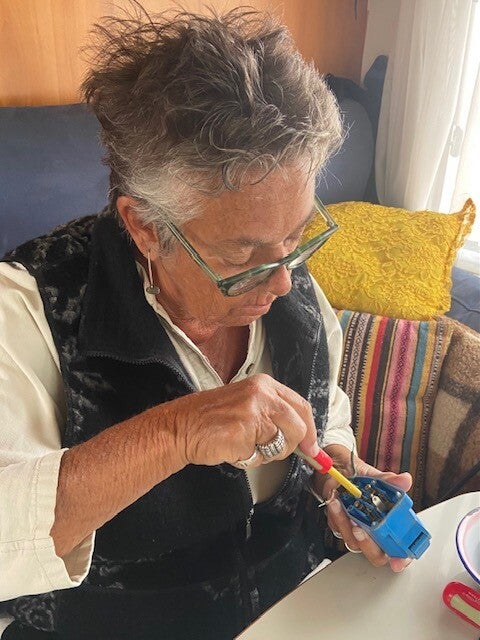 Hoewel vanmiddag pas laat de zon nog even doorbrak en het uiteindelijk 18º werd, was het vanochtend bewolkt en stond er een koude wind. Een geëigend moment voor Everdien om een elektriciteitssnoer te repareren, er zat kortsluiting bij de stekker, de reparatie moet nog voltooid , we hebben nog een reservestekker. Dat soort dingen zijn aan mij niet besteed dus heb ik me over de terugreis gebogen en een globaal plan gemaakt. We denken zo half mei thuis te zijn, ook afhankelijk van het weer en de toestand in de wereld.
