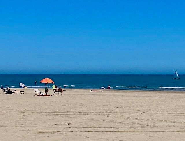 We hebben het reuze naar onze zin hier, het blijft voorlopig ook mooi weer met zo’n 20 º vandaag en een zwakke tot matige wind uit zee.