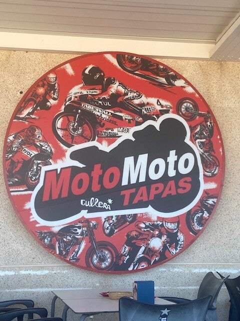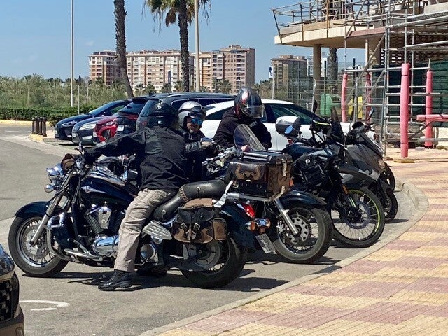 Het was weer een heerlijke middag, relaxed zitten lezen en omdat het opnieuw warm was zijn we tijdens een wandeling over de boulevard aan het eind van de middag weer op een terrasje neergestreken, dit keer bij de Motobar . Onder het motto meer Easy Ryder dan Techno. Everdien nam een gin-tonic en ik een biertje ,iets wat ik alleen maar doe als het warm is. Het was door het fraaie weer erg druk op het strand. Hier op dit plekje is weer alle ruimte, Spaanse campers zijn weer naar huis.
