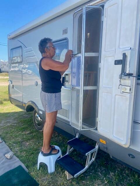 Everdien heeft vanochtend wat geklust, de hordeur gerepareerd, hij is weer muggenproof. Tot nu toe hebben we deze reis nog geen last van muggen gehad. Misschien dat we nog naar de Ebro delta gaan, dan zal het wel anders worden.