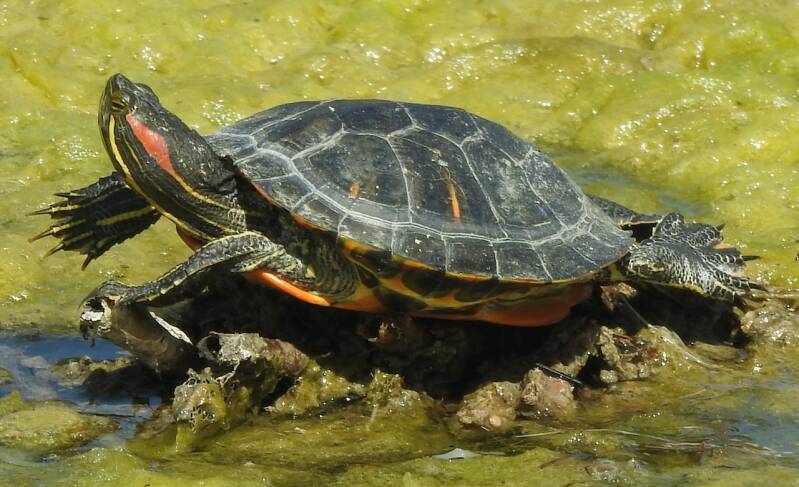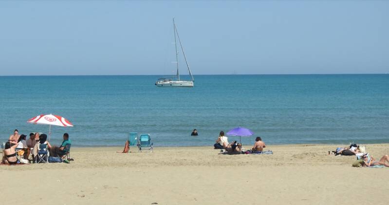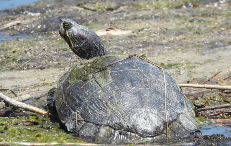 Vanmiddag ben ik alleen naar het stadje gewandeld, Everdien had wat last van haar knie, die heeft ze al weer een tiental jaren geleden gebroken in Marokko (tibia plateaufractuur) en gisteren waarschijnlijk overbelast.. Ik ben eerst een natuurgebied ingewandeld maar geen bijzondere planten of dieren gezien. Vorig jaar nog een Kwak gezien, nu alleen maar mussen. En Roodwangschildpadden, van kleintjes tot een oud exemplaar, het zijn exoten, gedropt door mensen met een aquarium die ze beu waren of zo. De triatlon, was vandaag, ze waren begonnen vanmorgen om 7.30 uur om 1,9 km te zwemmen, 90 km te fietsen en 20 km hard te lopen. En dat heet dan een halve triatlon. Maar hij was al afgelopen toen ik op de boulevard kwam waar het wel druk was evenals op het strand.