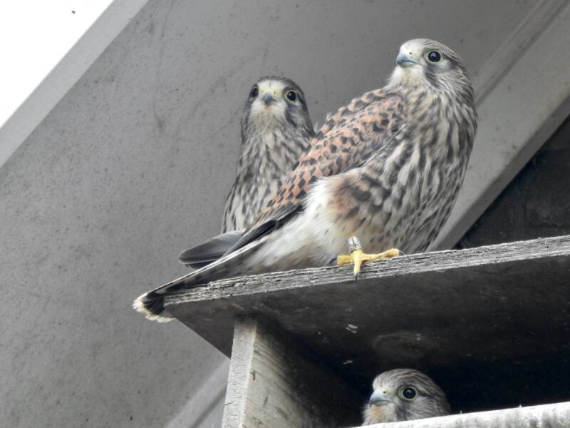 Een paar foto's van enkele weken geleden van jonge torenvalken in een nestkast bij een camperforumlid die bij ons in de buurt woont