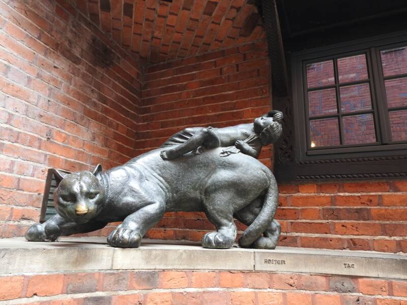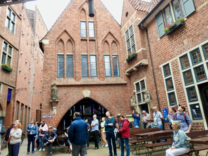 In de Böttcherstrasse gaat om de paar uur een klokkenspel. Hoewel er nauwelijks klokken te zien zijn, staart iedereen omhoog , een paar minuten lang.