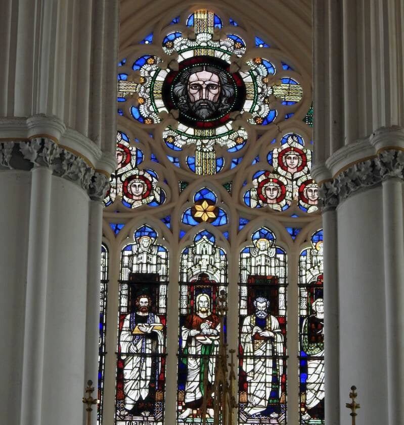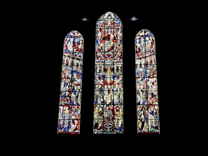 Zandstenen reliëfs in de Dom, de geestelijken in het midden dragen de Dom