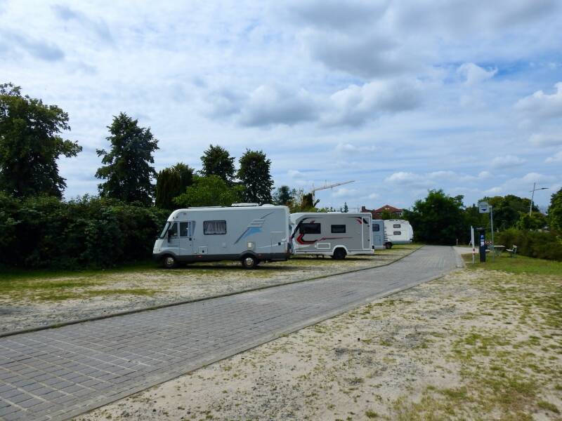 Bij die cp, onderdeel van een immense parkeerplaats voor dagjesmensen, is een voetgangersbrug over de Weser waardoor je in ruim 10 min. in de stad bent.