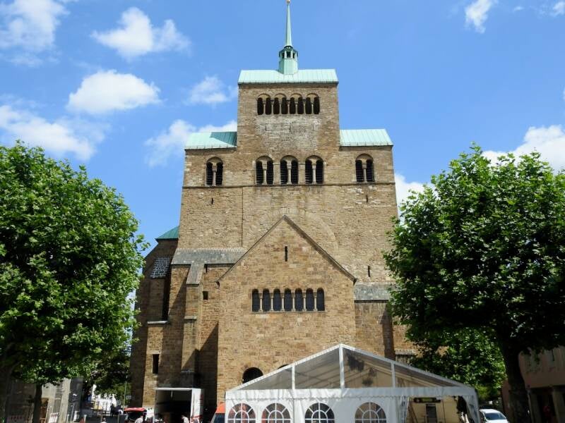 Er staan wat grote statige gebouwen, Duitse grandeur, alvorens je in het centrum bent. In het centrum werden tenten, zo te zien bier- en eettenten opgebouwd ,waardoor het centrum er niet zo aantrekkelijk uitzag, er is feest de komende dagen. Veel gebouwen zag je niet door de tenten maar we hebben , enigszins gehinderd door de hitte, toch nog wat rondgeslenterd.