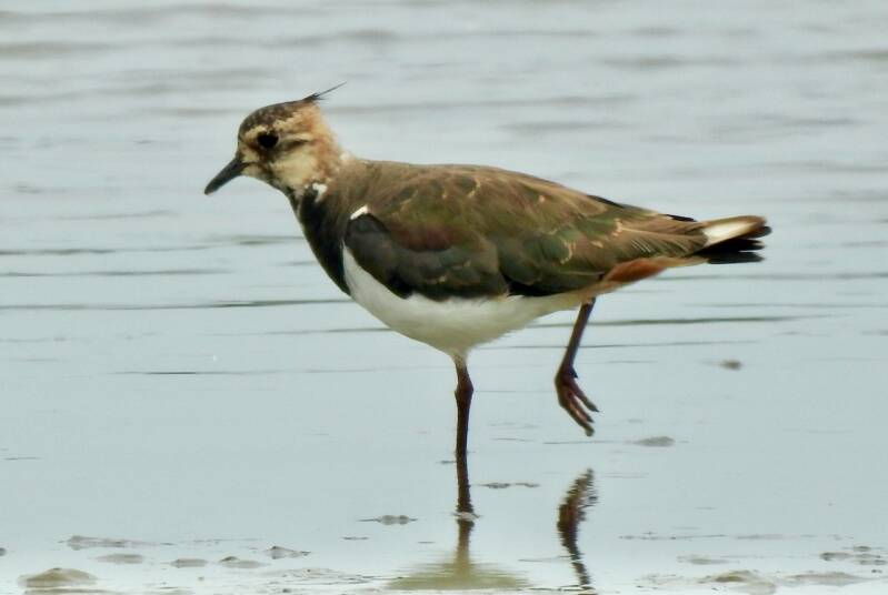 Vervolgens was ruim een kilometer verder de vogelkijkhut, waarover je over een vlonder heen liep. Het stonk behoorlijk naar volgelstront en uitgewoonde kippenhokken, geen twijfel dat we op de goede weg waren. Er waren veel de ons bekende soorten vogels aanwezig op dat moment, ganzen, meerkoeten, diverse soorten meeuwen en wat verder weg biddende visdiefjes. Gelukkig foerageerden er ook een paar Zwarte Ruiters en wat Kieviten die we bij ons in de Achterhoek nauwelijks meer zien. Hoewel we meer soorten hadden verwacht te zien, was het toch een leuk uitstapje.