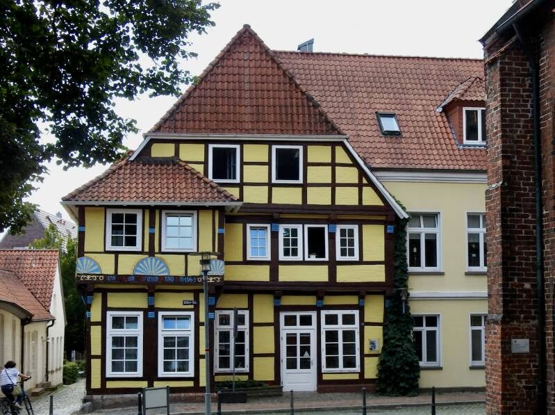 Via secondaire wegen zijn we naar Minden gereden, daarom deden we over de 84 km ruim 1,5 uur. Door kleine dorpjes, wat stadjes en langs roodstenen boerderijen met vakwerk. Baksteen wordt sinds de 12e eeuw gebruikt als bouwmateriaal, ooit door Norbertijner monniken uit Lombardije in Noord Duitsland geïntroduceerd voor de bouw van Gotische kerken.