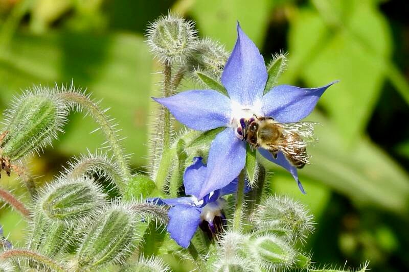 Een Blinde Bij op een Borago bloem . Borago wordt ook wel komkommerkruid genoemd