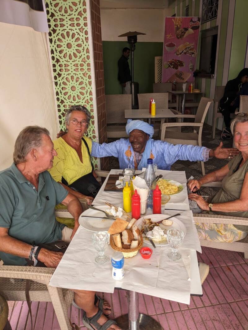 In de loop van de middag zijn Henk en Marita hier gearriveerd, zij hebben zich uitstekend vermaakt op het nomadenfestival in M ‘Hamid en op de camping die ze prettig vonden met leuke mensen, Riet en Cis bv staan daar ook al een tijdje. We hebben alvast een aperitiefje gedronken, we gaan vanavond hier op de camping eten, ivm de ramadan kunnen we na 20.00 uur daar terecht. Wat leuk om Henk en Marita weer te ontmoeten hoewel we donderdag pas afscheid namen is het weer erg fijn en vertrouwd. En door het tijdsverschil even een misverstand, doordat wij de Europese tijd aanhouden waren we even vergeten dat we niet om 20.30 aan tafel kunnen maar om 21.30 Europese tijd, we eten vanavond een uur later dan we de laatste maanden hier gewend zijn.