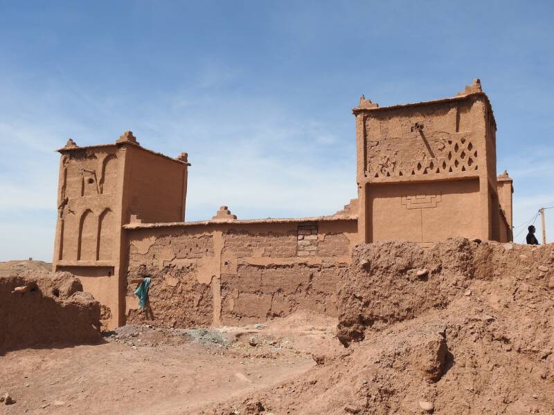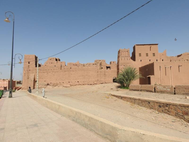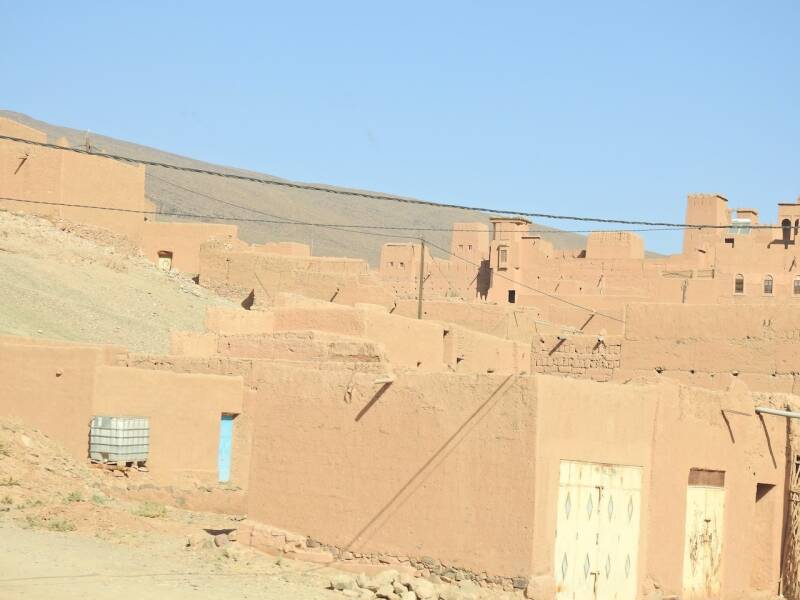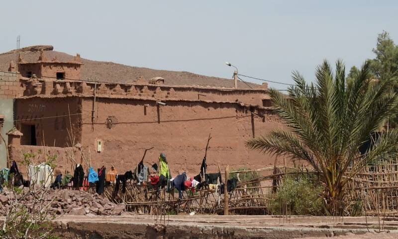 De Draa regio telt talrijke kasbah’s. Ze zijn te vergelijken met Europese kastelen, vestigingen en burchten. In deze van leem, steen, kiezel en hout gemaakte enorme bouwwerken beschermden de stammen zich tegen aanvallen van buitenaf. De huizen hebben houten deuren en veel bouwmateriaal is gemaakt van palmbomen. Iedere etnische stam had zo zijn kasbah('s), wat woongemeenschappen waren van soms wel honderden huizen. Sommige kasbah's waren niet bewoond, maar waren bewaakte opslagplaatsen voor dadels, graan en kostbaarheden. Er staan ook de nodige ksour( meervoud van ksar, versterkt dorp) in de Drâa vallei waarvan we nu het deel van Zagora naar Agdz hebben gereden, misschien wel het mooiste deel van de vallei. Everdien heeft vanuit de camper meer dan 100 foto’s gemaakt, een selectie is hier geplaatst. Er staan ook foto’ van vrouwen aan hun kleding is te zien tot welke stam in de Drâa vallei ze behoren. De weg door de vallei is ook erg mooi met een apart aangegeven fietspad, in 2019 was hij net nieuw toen we daar reden.