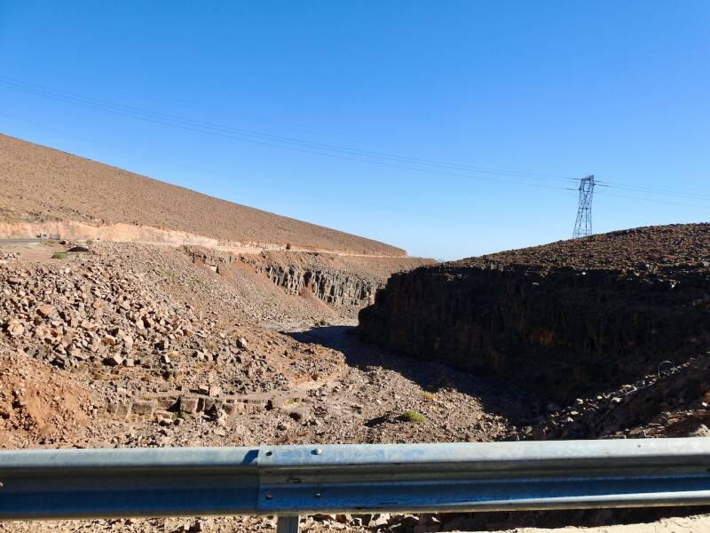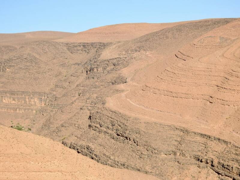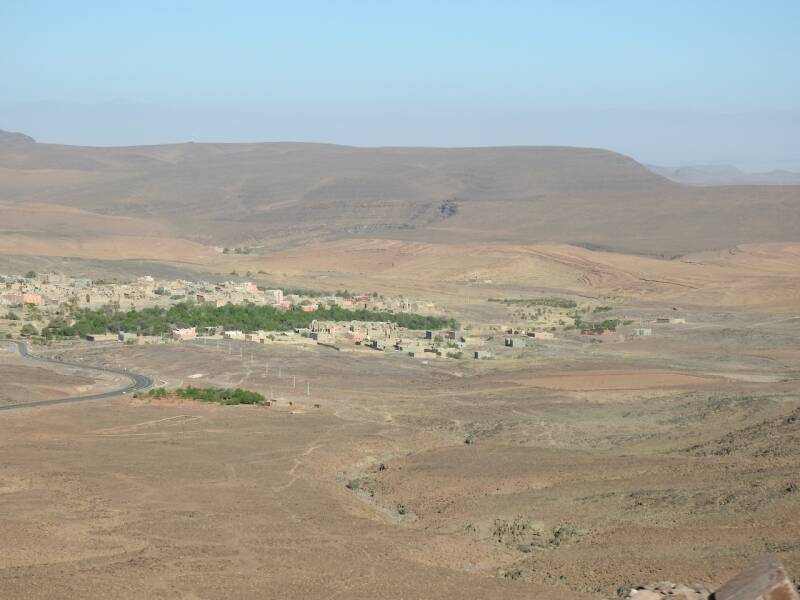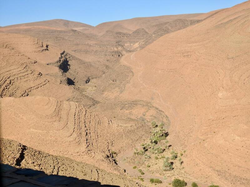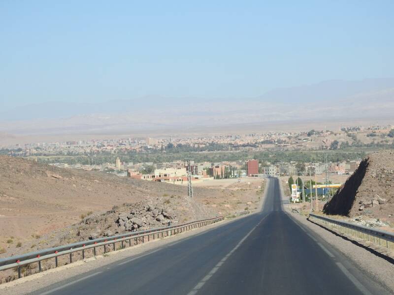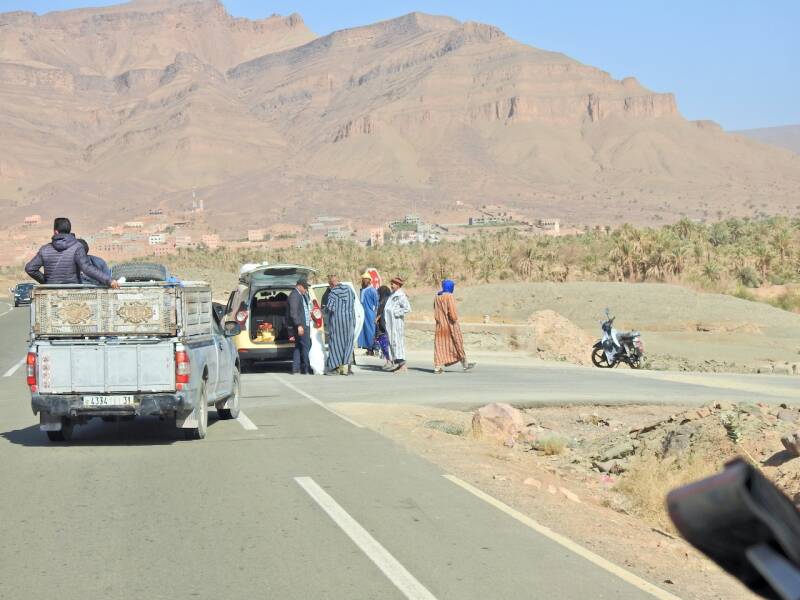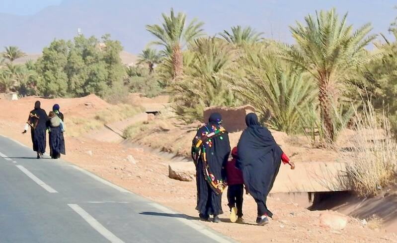 Deze route kenmerkt zich door de enorme hoeveelheid palmen die in de vallei staan, het zijn dadelpalmen. Helaas eist de droogte zijn tol en zullen velen hun bron van inkomsten, de teelt van dadels verliezen. Zo komen er veel werklozen, slachtoffers van de klimaatverandering zoals ook elders in Afrika. Zij zullen wanhopig proberen naar Europa te komen, leest u even mee meneer Wilders met uw ‘geen cent naar de strijd tegen klimaatverandering.
