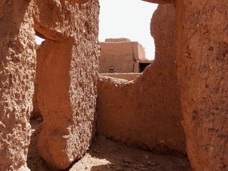 Tegenover de garage was een paadje waar we een blik konden werpen op een oud gedeelte van Zagora