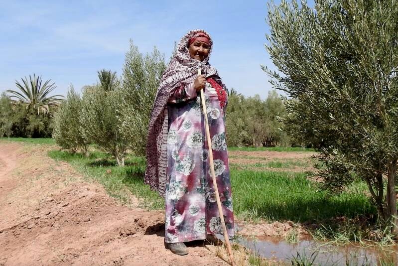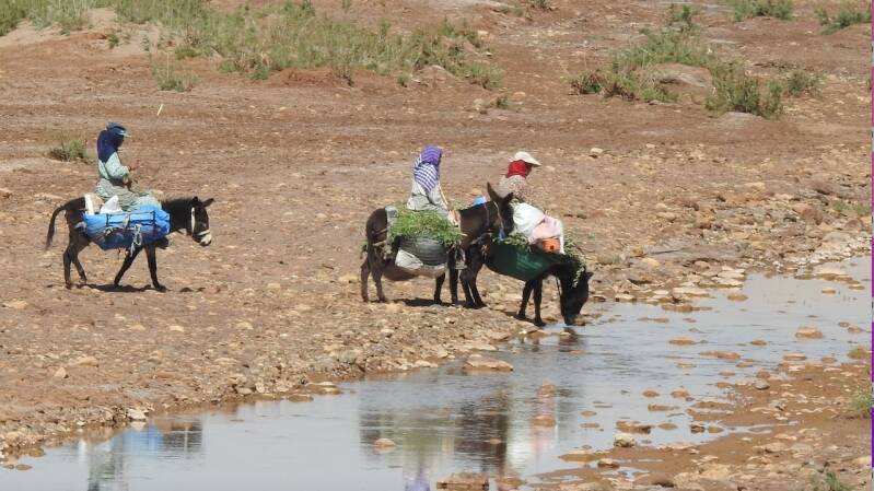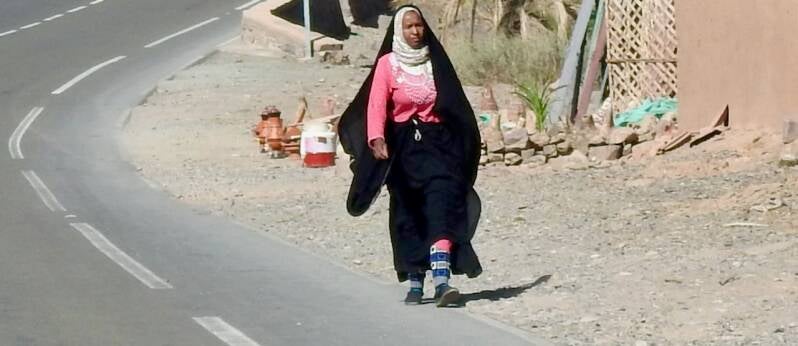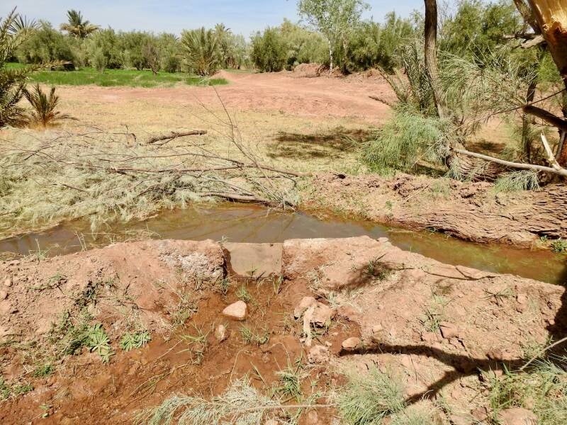 We wilden vanmorgen maar weer eens de fiets pakken om mijn voet te ontzien, de klachten zijn nog niet helemaal verdwenen. Maar na enig overleg hebben toch de wandeling gewaagd naar een dorpje hier niet al te ver vandaan. De bewoners zijn erg vriendelijk, zelfs vrouwen willen wel op de foto. Een leuke wandeling totdat we ons van de gebaande paden waagden en langs kleine akkerperceeltjes richting de rivier wandelden. De paadjes werden steeds smaller totdat we alleen nog maar over de dijkjes van de bevloeiingskanaaltjes konden lopen, schuin en af en toe modderig en glad door hert water wat er vloeide, opgepompt uit de rivier El Maleh. Voor mijn voet was dat de goden verzoeken maar onder het motto als dit goed gaat gaat alles goed zijn we met een boog naar het dorp terug gewandeld om vervolgens weer naar de camping te lopen. We hebben ruim 5 km gelopen , wat meer dan de bedoeling was, nu afwachten hoe het verder met de voet gaat, tijdens het lopen niet veel last.