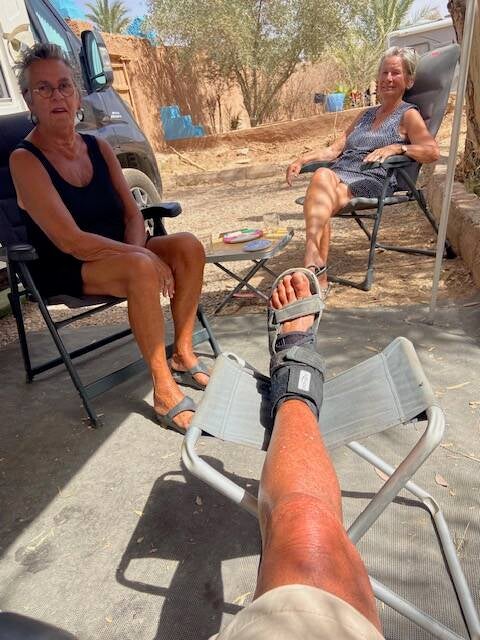 Vanmorgen ben ik met de campingbaas Mohammed naar de huisarts gegaan, hij maakte de afspraak en reed mij daar naar toe. Vervolgens vertrok hij en wij konden plaats nemen in de wachtkamer , 8 wachtenden voor u. Vorige keer kregen wij een een voorkeursbehandeling en waren we meteen aan de beurt, dat vonden we toen gênant, een gevoel van witte suprematie bekroop ons of op zijn minst een ongevraagde voorkeursbehandeling. We waren wel zo laf om niet te weigeren hoewel de hele wachtkamer vol zat en wij meteen aan de beurt waren. Dit zaten we o.a. te mijmeren terwijl we 1,5 uur moesten wachten. De dokter hoorde de klachten aan, we spraken Frans en Engels, er werden 2 röntgenfoto’s gemaakt en zijn conclusie was dat het een lichte verstuiking, een overbelasting van de voet was veroorzaakt door teveel wandelen. 2 soorten medicijnen en been omhoog omdat de enkel ook gezwollen is. We moesten 400 dh betalen voor de het doktersbezoek en de röntgenfoto’s. We hebben besloten om nog 2 dagen hier in Zagora te blijven om te zien of de medicatie aanslaat. Het hier wat langer blijven is bepaald geen straf.