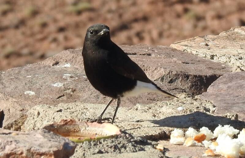 Bijna op de top voerden jongens vogels, hier de Zwarte Tapuit