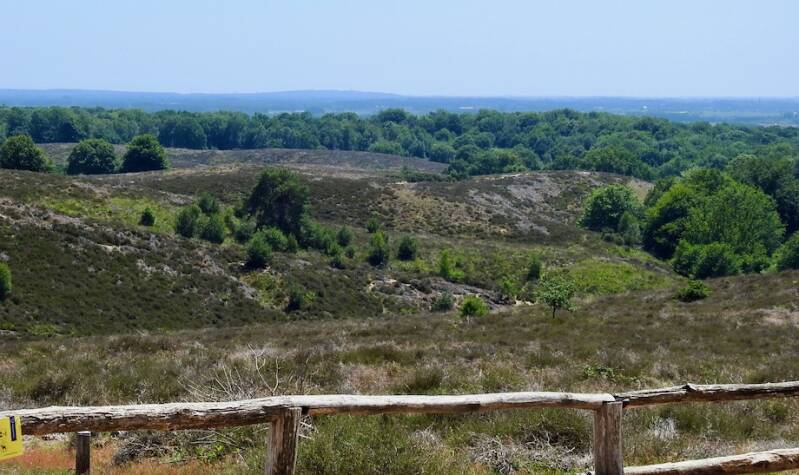 Vergezicht vanaf de Posbank richting het oosten. Achter de bossen ligt de IJssel vallei en de heuvels aan de horizon zijn in Duitsland.