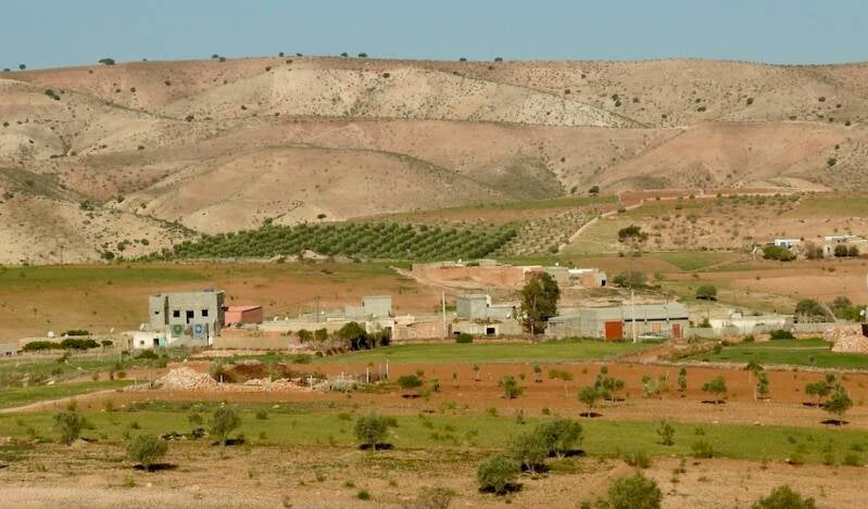Het noorden van Marokko is vruchtbaar en dus landbouwgebied. Ook hier eindeloze plastic kassen en tunnels voor de kweek van Bananen, tomaten en aardbeien. Het bestrijkt een groot gebied tussen ruwweg Larache en Kenitra. Hier en daar werd er geoogst, dat is ook de reden dat we niet langs de leukere kustweg zijn gereden. Het is nu oogsttijd van winterwortels en er is veel vrachtverkeer dan op de weg die dan is bezaaid met modder, wat we ons kunnen herinneren althans.