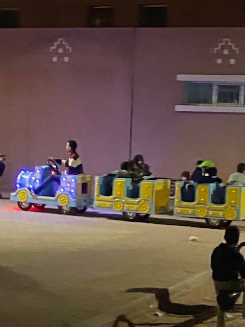 Er is 's avonds al wat vertier voor kinderen in het kader van de Amandelfeesten. Jonge moeders ontmoeten elkaar hier .