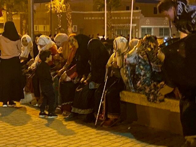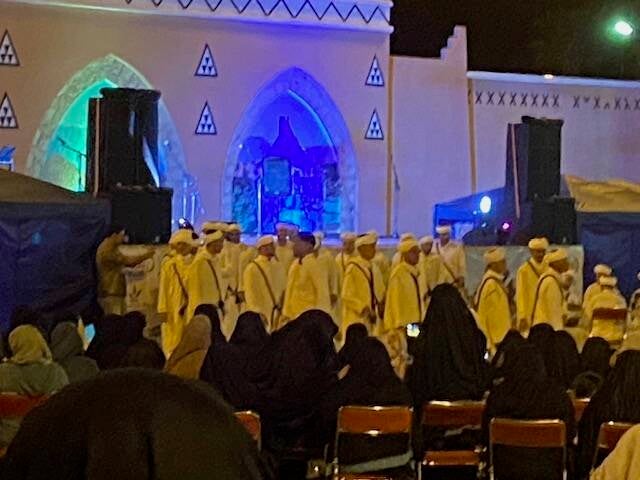 Op het podium trad weer een groep op , dit keer gemengd, waarbij de vrouwen zongen en de mannen muziek maakten, waarbij een fluit een repeterende melodie ten gehore bracht en hoewel de Arabische kwarttonen soms wat vreemd klonken toch ook voor ons wat opzwepend was.