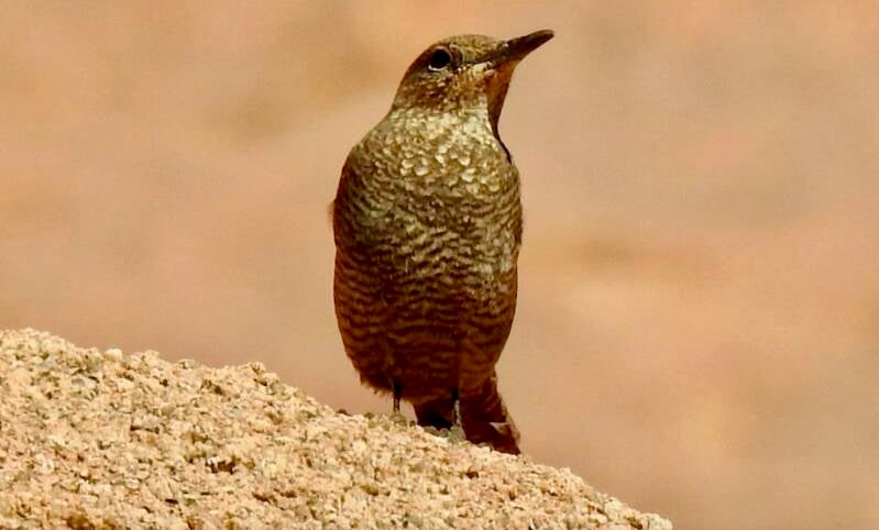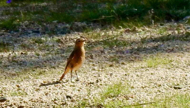 Al eerder gezien en niet goed kunnen fotograferen, nu echter wel: de Blauwe Rotslijster, een vrouwtje. Mannetje is donkerblauw.
