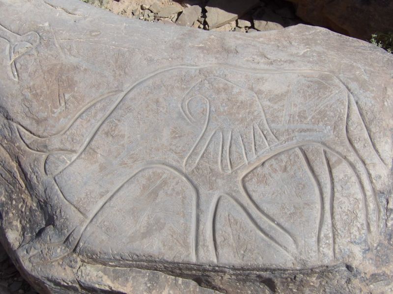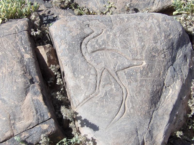 We zijn door een prachtig landschap gereden, eerst door een steen woestijn en daarna een stuk door een canyon. Ait Ouazik is een aardig dorpje waar een kashba is en een paar kilometer buiten het dorp zijn op een heuvel de rotstekeningen te vinden die 10.000 jaar oud zijn. Je hebt tekeningen van oa een giraffe, neushoorn, olifant, gazelles en vogels waaronder een emoe.