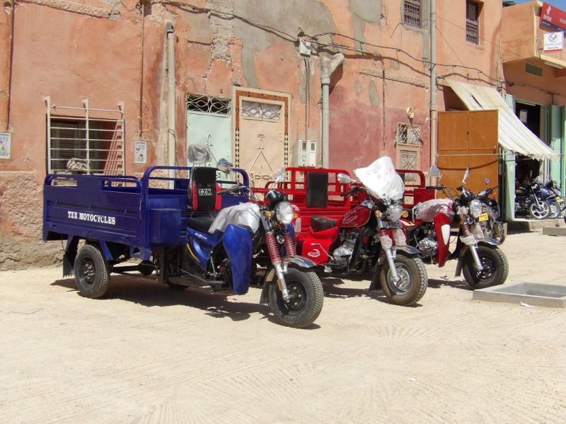 Vanmorgen zijn we het dorp ingewandeld om wat van de sfeer op te snuiven. Die bevalt ons prima, het is wat rommelig, stoffig ook, er zijn wat winkeltjes en reisbureautjes, kleurrijke mensen en 4wheel drives. Die laatste hebben een link met de reisbureautjes, je kunt hier (en in Zagora) een excursie boeken de woestijn in met een dromedaris of een 4wheeldrive.