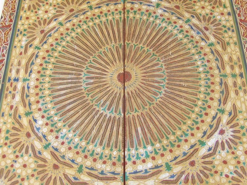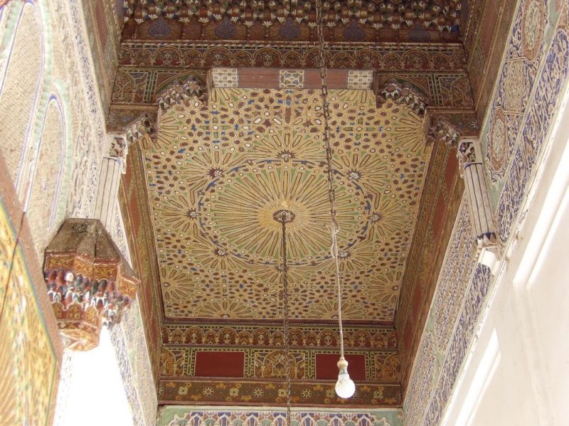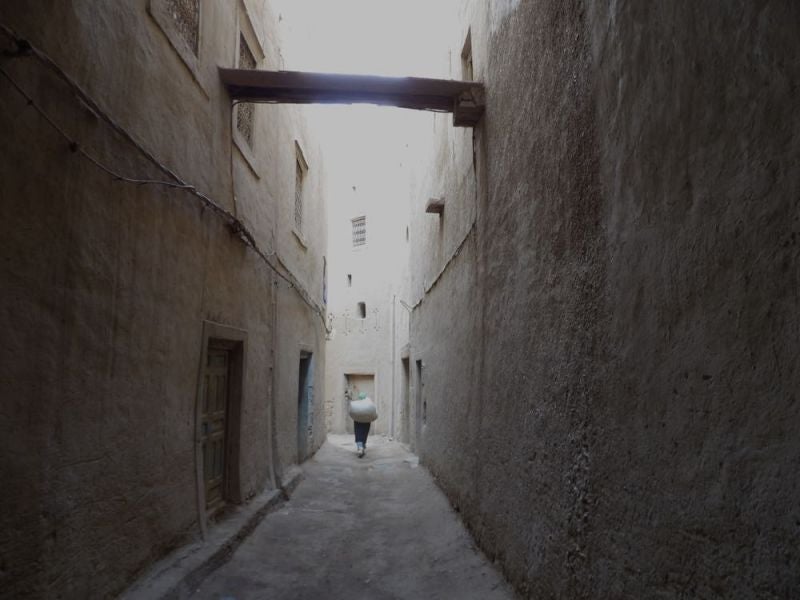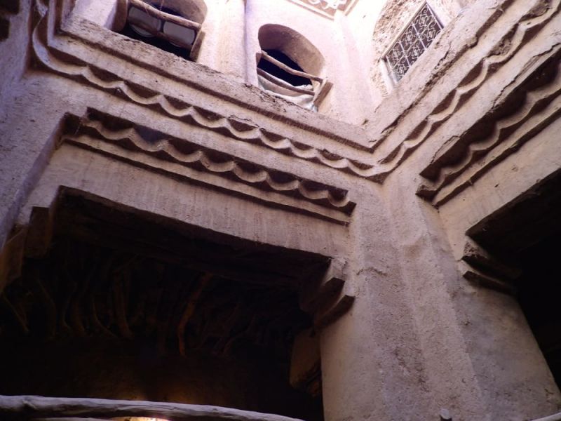 We zijn door het dorp gewandeld en zijn eerst bij de bibliotheek wezen kijken waar eeuwenoude koran geschriften bewaard worden, oa kalligrafische werken versierd met goudstof en saffraan en een in gazellenleer gebonden koran.. De bibliotheeek is een belangrijk centrum voor Islamitische studie. De bieb was gesloten maar die hebben we 2 jaar geleden al bezichtigd. Het portaal van de bieb heeft een prachtige beschilderde deur en plafonds. Onder de bogen op de binnenplaats lagen zieken en invaliden die hoopten op genezing.