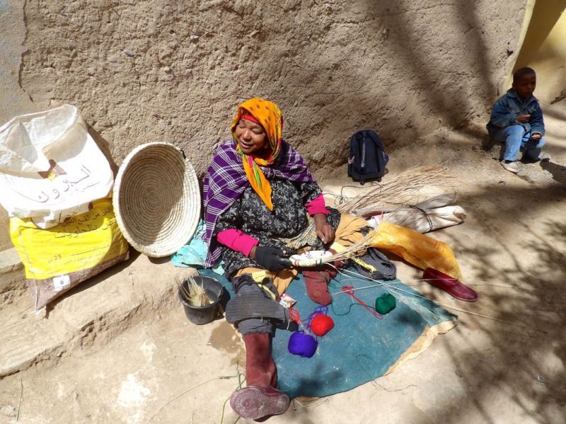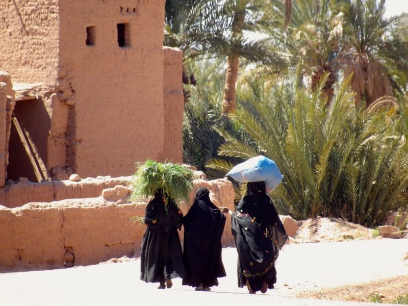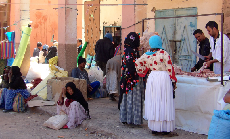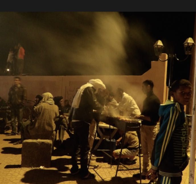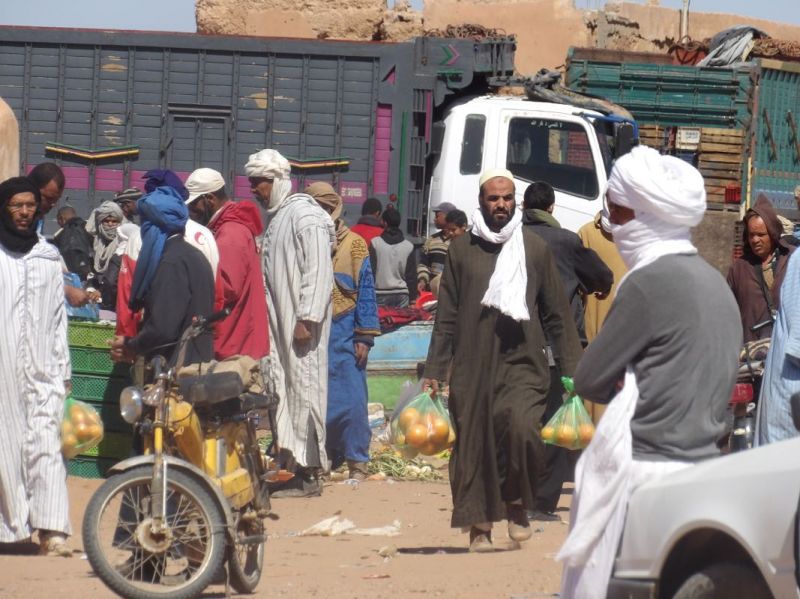 Tegen de avond komt het stadje tot leven. Je ziet veel vrouwen op straat die gaan ‘winkelen’ bij de stalletjes langs de straat. De Berbervrouwen gaan veelal gekleed in blauwe of witte rok met zwarte omslagdoek terwijl de Bedoeïenenvrouwen meer kleurrijke kleding dragen. De mannen zitten ondertussen in het theehuis.