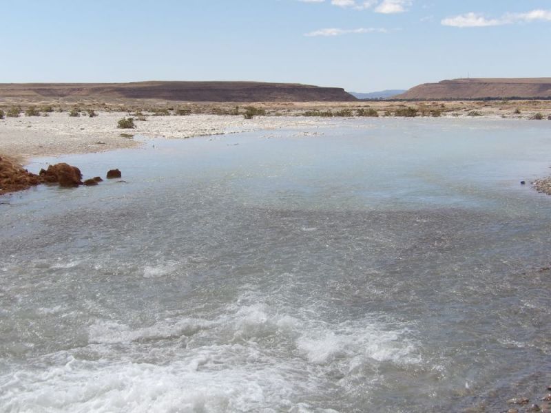 We zagen een enorme kudde van een paar honderd dromedarissen die op de steppe liepen te grazen. Halverwege de route ligt Tissent en vlak voor Tissent is door erosie een grillig patroon in de aarde ontstaan, fraai om te zien. Ook is er een 15m diepe canyon waar onderin wat palmbomen groeien. Bij Tissent zijn we naar een waterval gegaan maar die was vrijwel verdwenen omdat men een dam had gebouwd, misschien om energie te winnen.* Er was nog een kleine waterval over waar vrouwen de was deden.