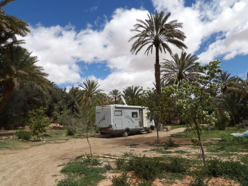 We staan in Zagora op de camping ‘Les Jardins de Zagora’ waar we al een paar maal vaker hebben gestaan. Doorgaans is het hier vol of bijna vol, nu is er nog genoeg ruimte. Onze Duitse buren uit Foum Zguid staan hier ook.