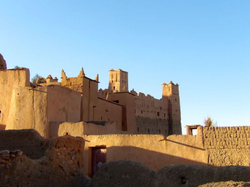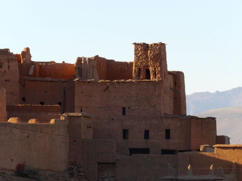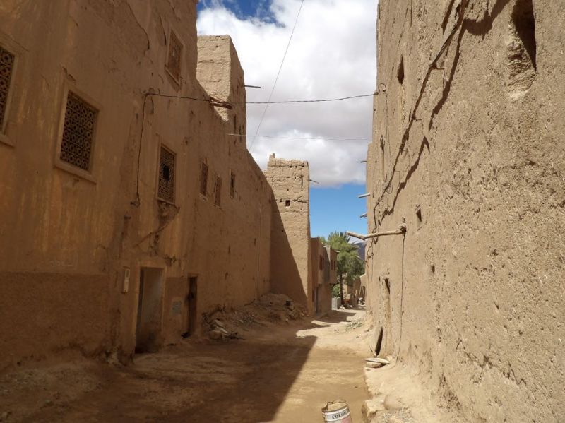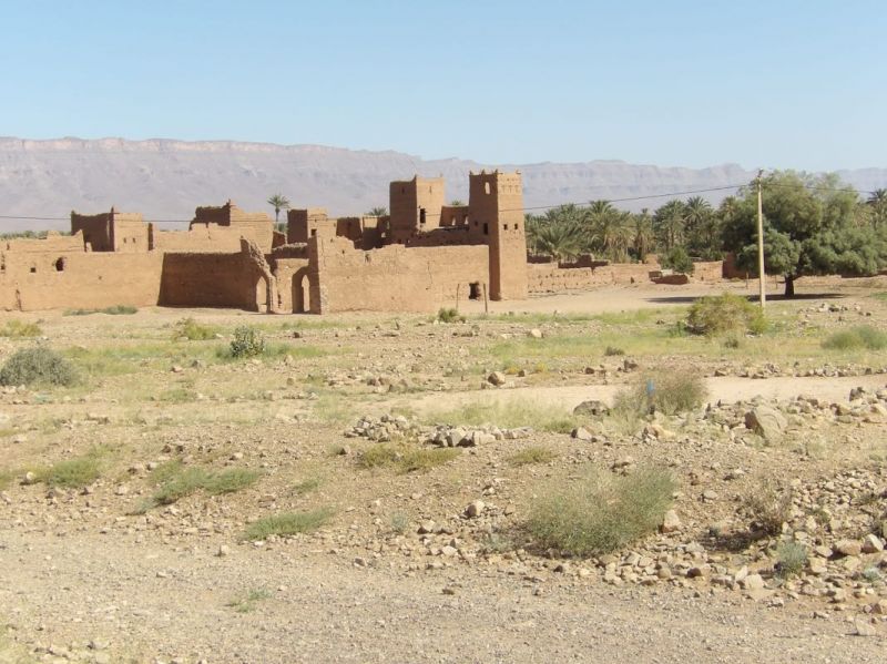 We kwamen langs een vervalen kashba, de laatste overvloedige regenval had wat er nog overeind stond bijna helemaal doen instorten.