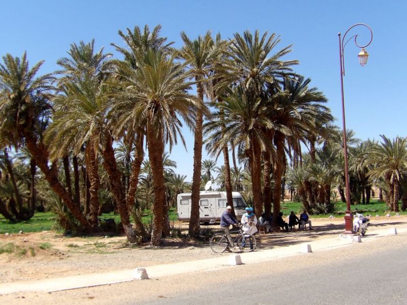 We staan in Nkob op de camping waar nog 5 andere Nederlandse campers staan, het staat helemaal vol. Wil, Margot en Jos staan hier ook met hetzelfde doel als wij hebben: Kees en Bea begroeten die we in 2009 voor het eerst in Marokko hebben ontmoet, in Marokko zijn blijven hangen en hier nu al weer 4 jaar wonen . We hebben op een terrasje gezellig bijgepraat en hebben toen een wandeling gemaakt dor het mooie Nkob, het stadje met de 40 kashba’s. Vanaf de rand van het dorp heb je een prachtig uitzicht over de palmentuin met de akkertjes en vrouwen die de was doen.