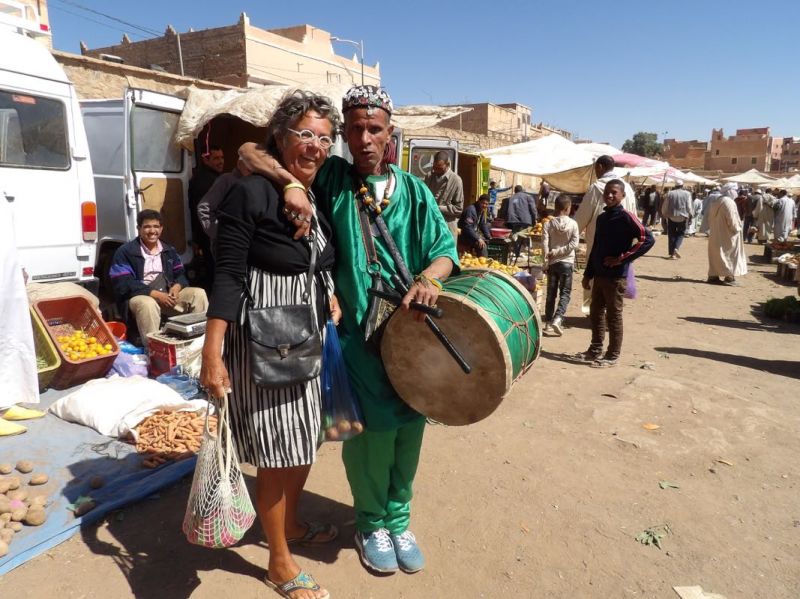 Vanmorgen zijn we vertrokken uit Mhamid waar we een leuke week gehad hebben. Nadat we van Ankie en Ruud afscheid hebben genomen zijn we eerst langs de souk gereden om wat groente en fruit te kopen waarbij opviel dat het veel drukker was dan vorige week, misschien omdat we vroeger waren.