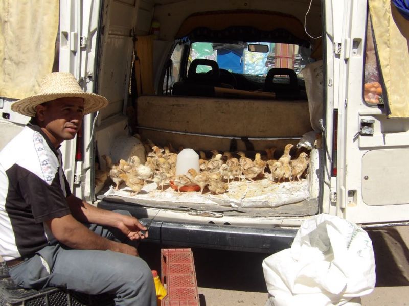 Vandaag was de souk in Foum Zguid dus vanuit de wijde omgeving kwamen mensen naar de markt. Niet zoals je elders ziet op ezels, met auto’s lopend of met een grand taxi, hier komen ze vooral met oude roestige Ford busjes die afgeladen vol zitten omdat ze als taxi dienst doen. Auto’s zie je weinig in deze omgeving.