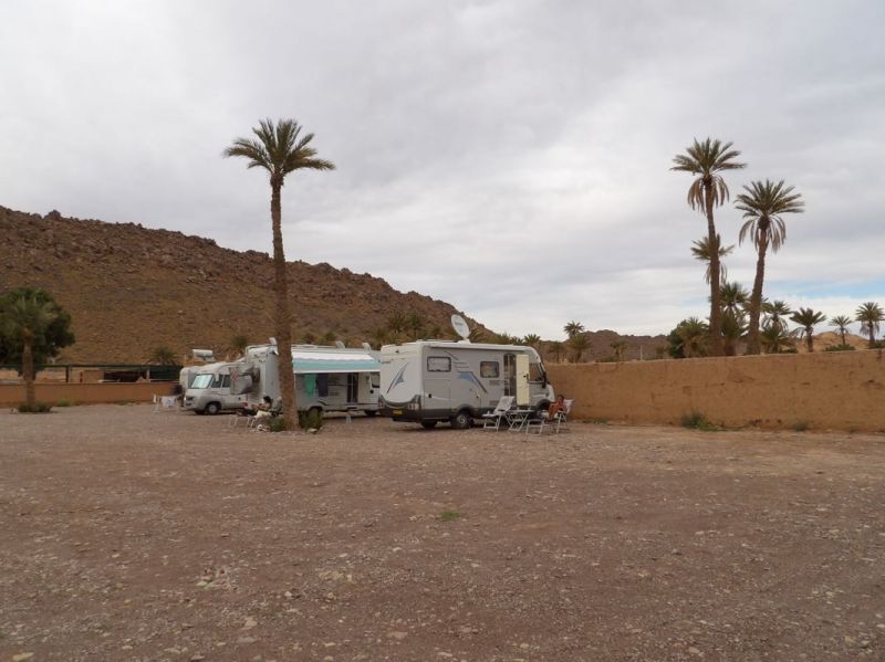 Van Tissent naar Foum Zguid is het 70km, we kwamen slechts 2 auto's en 2 campers tegen. We zijn in Foum Zguid op de nieuwe camping Bab Rimal gaan staan die 7km buiten het dorp ligt. Er is ook een camping in Foum Zguid zelf, daar hebben we 2x eerder gestaan maar die is op zand en daardoor erg stoffig. Er is een zwembad bij het hotel waartoe de camping behoort waar je gebruik van kunt maken. Niet verkeerd, er was weliswaar veel sluierbewoling maar wel 27º