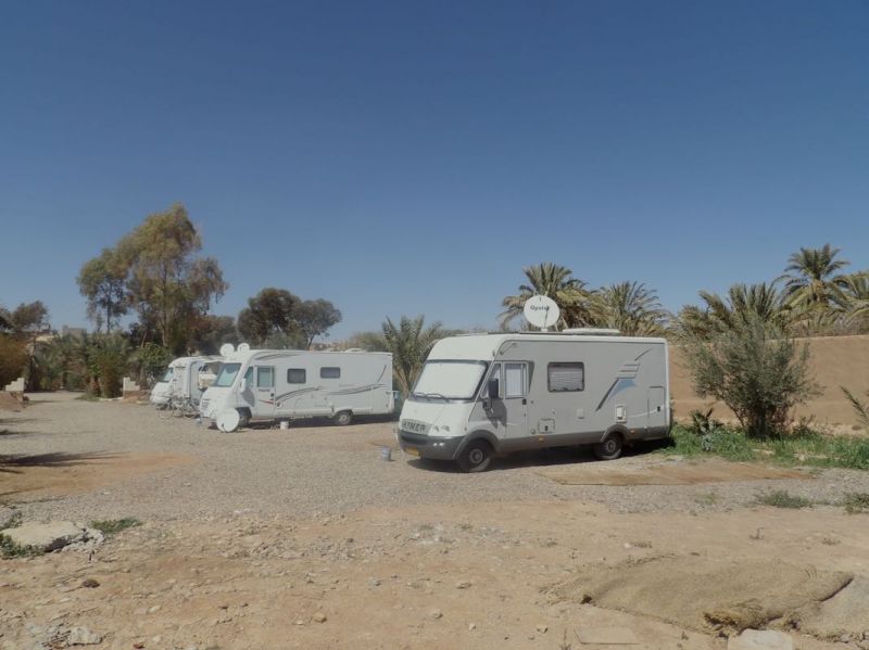 parking bij het zwembad. 40Dh voor een overnachting, stroom erbij kost 20Dh extra