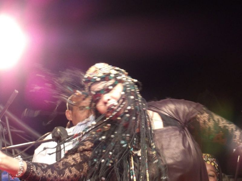 Als laatste band kwam een Amazigh (berber) band, Tachinouit, die internationale ervaring had. Het was opzwepende muziek en dans door 3 zingende/tieten en kontenschuddende dames (ze hadden heel wat te schudden) wat ook een erg opzwepend effect op de overwegend jonge mannelijke bezoekers had.