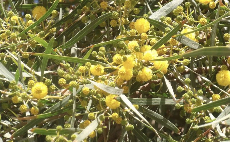 Vanmorgen zijn we naar de Draâ gewandeld. Bij de oevers kon je goed zien hoe hoog het water geweest was begin december. Een bulldozer was nog bezig zand en klei weg te schuiven. We zagen bloeiende mimosa, fraai dat geel naast de paarse bougainvilles.