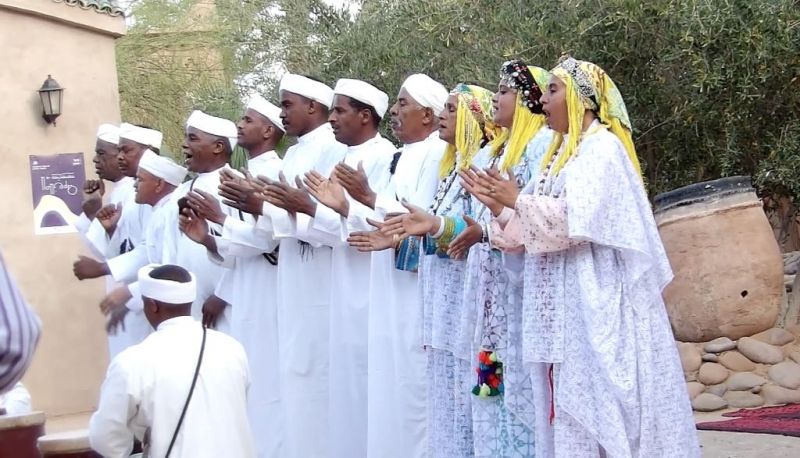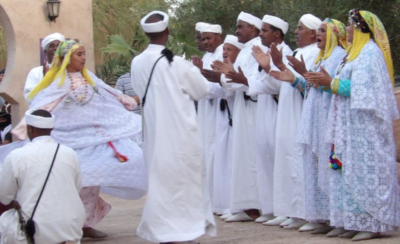Er waren wat toespraken waarin de sponsoren werden bedankt en er was een optreden van een traditionele zang/dansgroep uit de Draâ vallei, de groep Rokba de Zagora. Hoewel in het wit gekleed was het toch een kleurrijk gebeuren, folklore uit de Sahara.