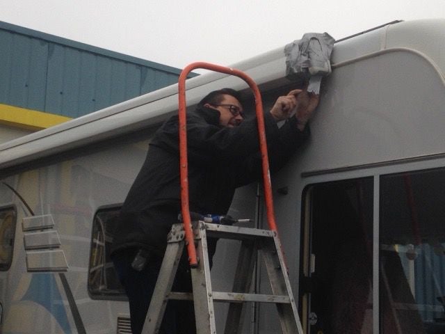 Vorige week hebben we een nieuwe luifel laten plaatsen omdat door een uitwijkmanoeuvre in Frankrijk in aug jl de luifel onherstelbaar was beschadigd . De verzekering vergoed een deel van de kosten, ongeveer een kwart, omdat de luifel inmiddels afgeschreven was.