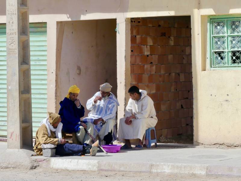 Marokkanen zijn gewend om op de grond te zitten ( of een muurtje o.i.d.)