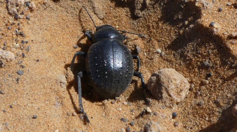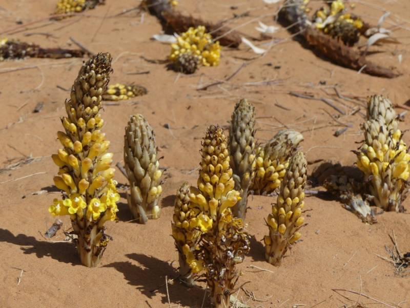 Er is wel wat leven in de woestijn. Afgezien van wat vogels hebben we ook 2 keversoorten gezien. En er groeit hier ook de gele bremraap en grote tamerisken, die moeten wel enorme wortels hebben om het grondwater te bereiken.