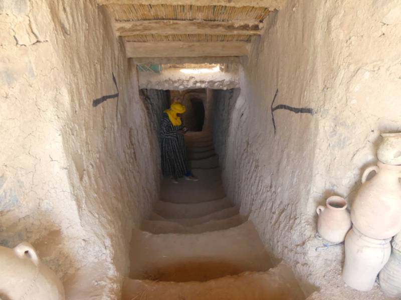 In de putten hier kon door een draaimechanisme water met de hand, of met de voeten als men pijn in de armen had, omhoog worden getakeld. Ook werden er wel kamelen voor gebruikt. Bij de aanleg van het systeem zijn er mensen gestorven door zuurstofgebrek in de ondergrondse gangen. Met een van de 2 broers die deel uitmaken van de coöperatie die het systeem hier beheert, zijn we via uitgehouwen trappen 50m naar beneden gedaald naar het ondergrondse gangenstelsel.