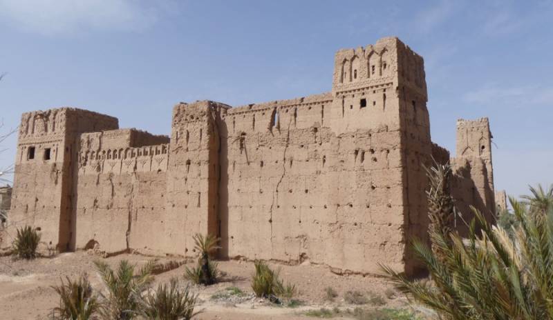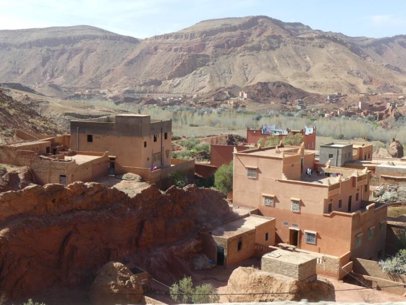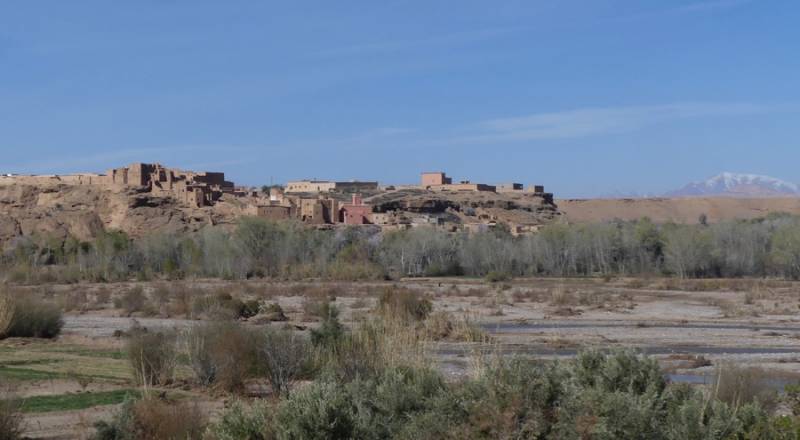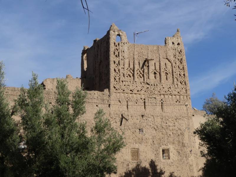 Ook hier staan vervallen kasbah’s maar ook een fraai exemplaar die nog bewoond wordt.