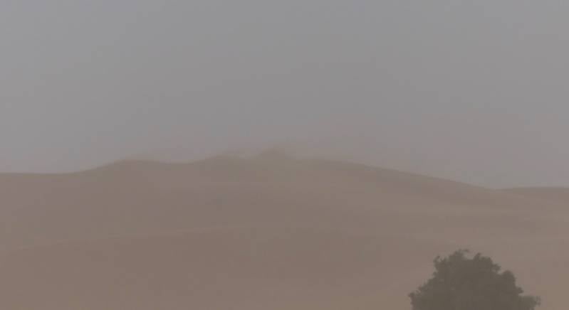 tijdens de zandstorm en 2 uur later alleen nog de zwarte wolkenlucht, nog wel wat wind